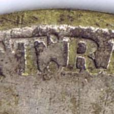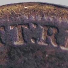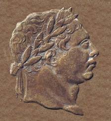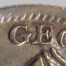 1st bust Punched completely hair curls engraved Middle leaf in 1st section of laurel wreath slightly to the