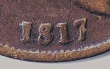 right pointing to the leaf above the ear. Ribbons closely together. 1817-1820 |