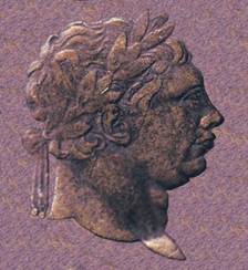 1st bust Punched completely hair curls engraved Middle leaf in 1st section of laurel wreath slightly to the