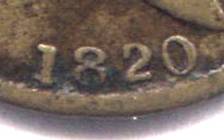 of next section. Ribbons slightly spaced. Flat bottomed knot. 1819: J920o 1820: J020o -